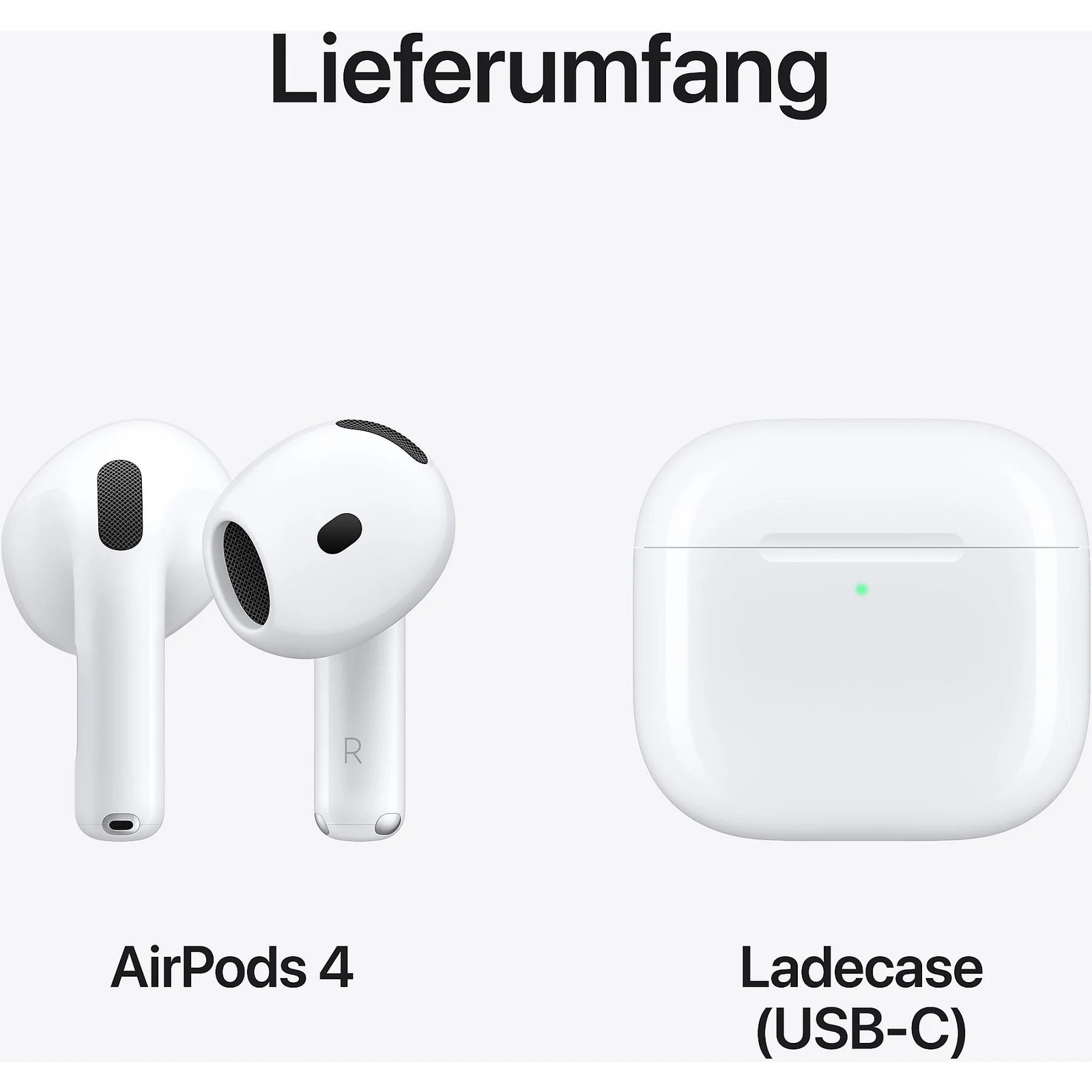 Die AirPods (4. Generation) sind kompakte, leichte Ohrhörer mit einem passgenauen Sitz für den täglichen Einsatz. Sie unterstützen 3D Audio für ein räumliches Klangbild und sind gemäß IP54 vor Staub und Spritzwasser geschützt.