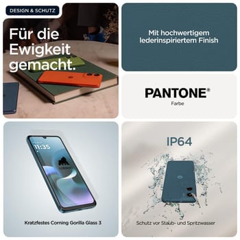 - IP64-Wasserschutz3 und Premiumdesign. Freu dich über eine lange Lebensdauer und mehr Stil mit Corning® Gorilla® Glass 3, sorgfältig ausgewählten PANTONE™-Farben und lederinspiriertem Finish.10