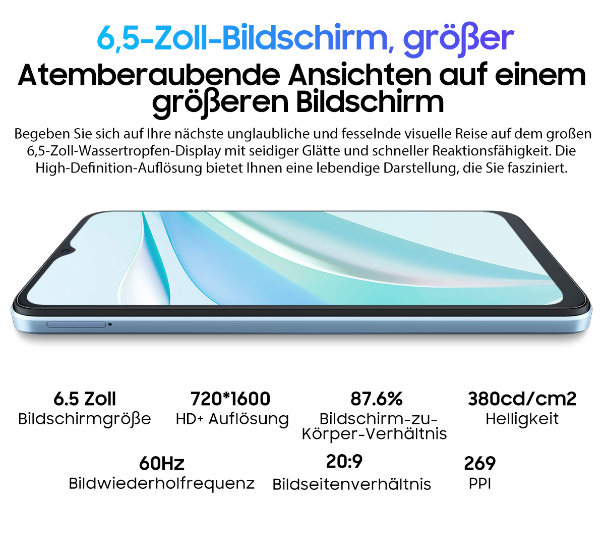 Bildschirm --------6,5” Zoll 720*1600 FHD+INCELL