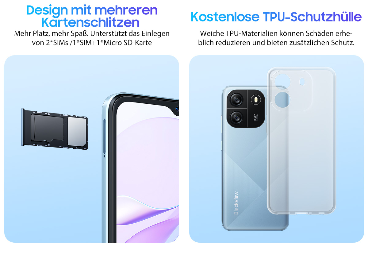 SIM-Slot --------- Zwei Steckplätze; 2*SIM/ 1*SIM+ 1*TF-Karte