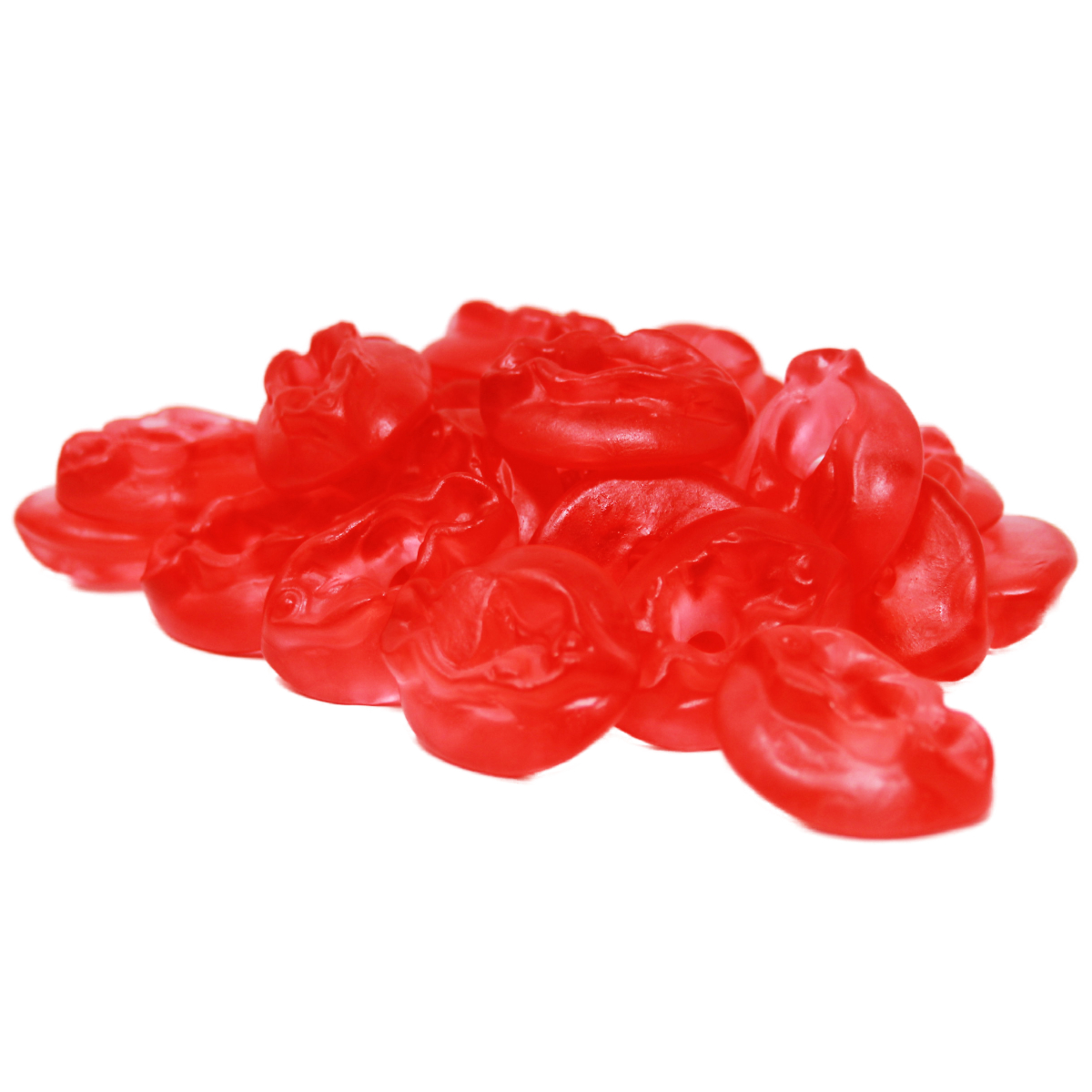 Zutaten: Glukosesirup, Zucker, Gelatine, Säuerungsmittel (Zitronensäure), Farbstoffe (E120), Aroma, Pflanzenöl (Kokos), Überzugsmittel (Carnaubawachs).