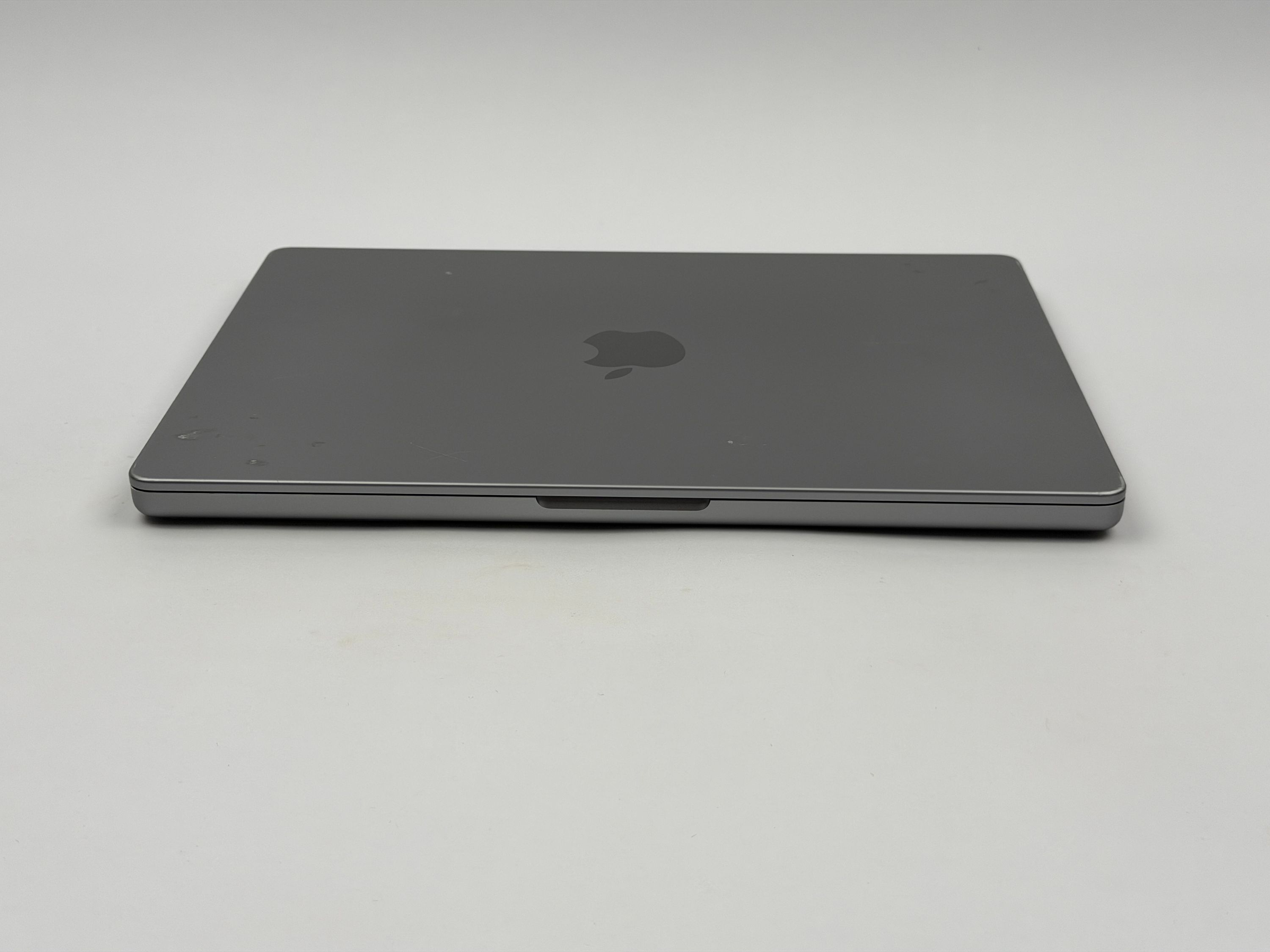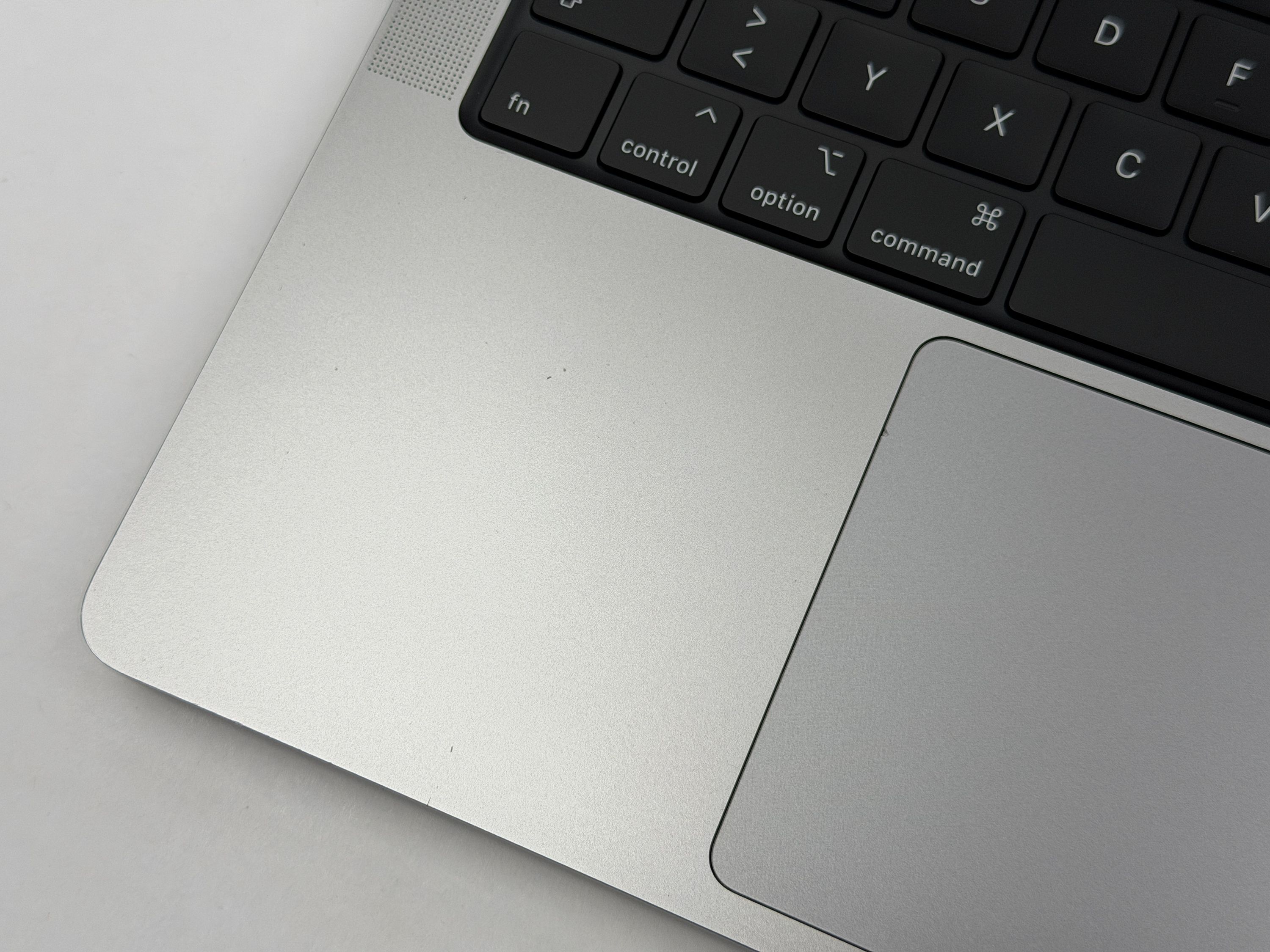 An den Seiten gibt es einige Kratzer und Kerben. Neben dem Trackpad gibt es mehrere Kratzer.