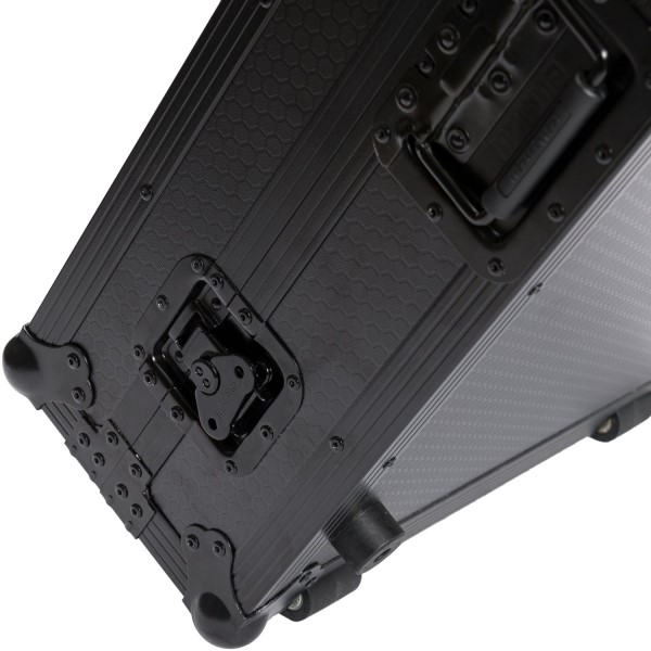 Das Case ist aus 9 mm starkem, vinylbeschichtetem Sperrholz gefertigt, das nicht nur robust, sondern auch optisch ansprechend ist. Solide Aluminiumprofile und federbelastete Butterfly-Verschlüsse sorgen für eine sichere und langlebige Konstruktion, die selbst intensiven Anforderungen standhält. Der vollständig gepolsterte Innenraum schützt den Pioneer DDJ-REV7 Controller optimal vor Stößen und Kratzern während des Transports.