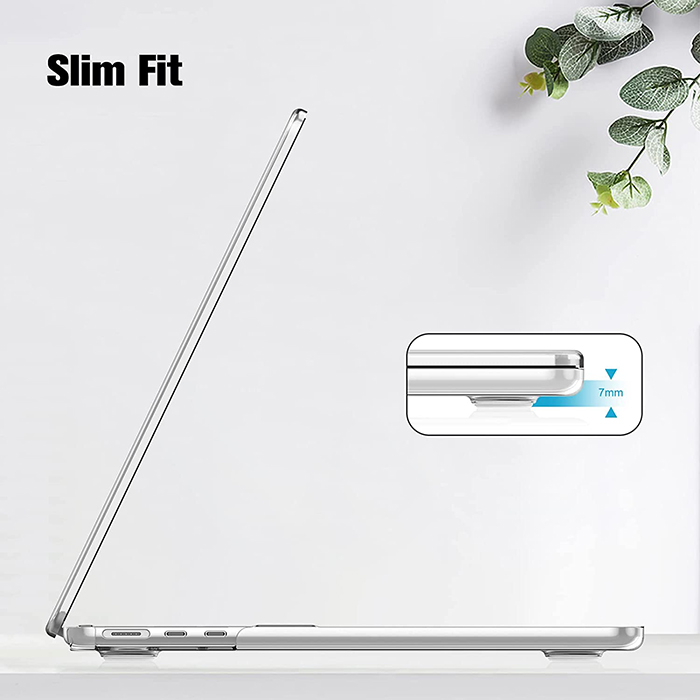 Die hochwertige Schutzhülle aus Polycarbonat bietet eine hohe Schlagfestigkeit, einen weiten Temperaturbereich und eine gute Dimensionsstabilität. Schützt Ihr MacBook Air 2022 vor Staub, Kratzern und Verschüttungen.