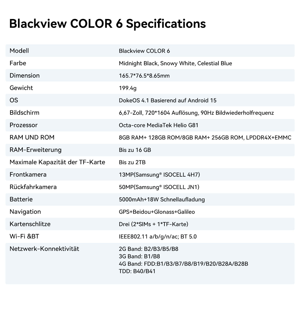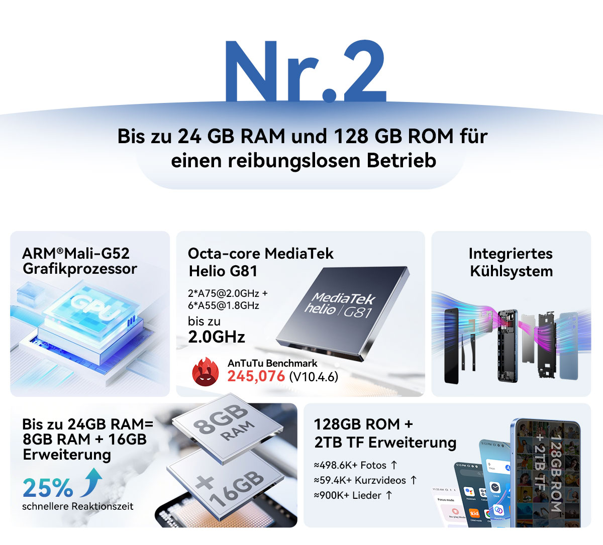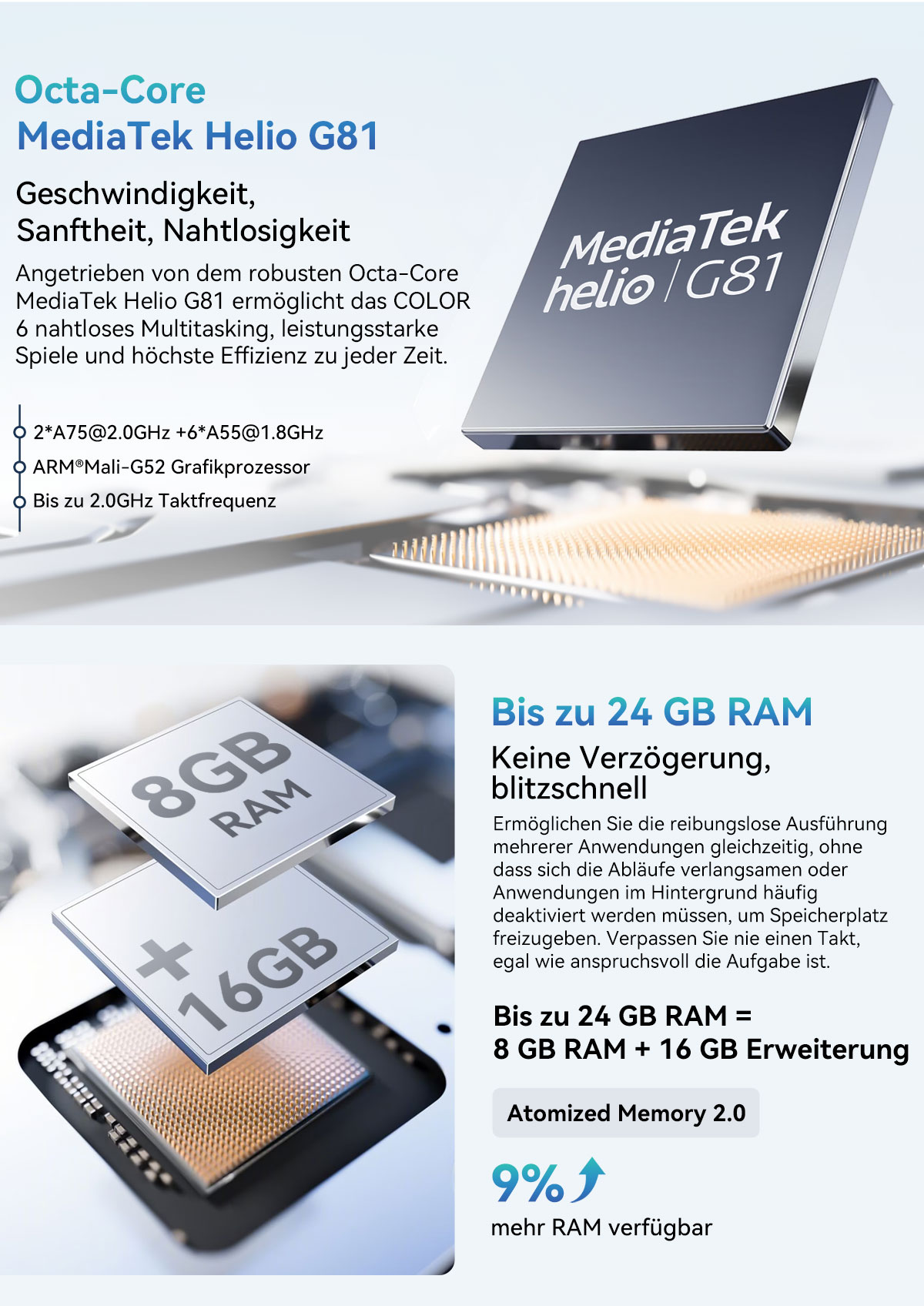 CPU ----------- Octa-Core MediaTek Helio G81,2*A75@2.0GHz +6*A55@1.8GHz
