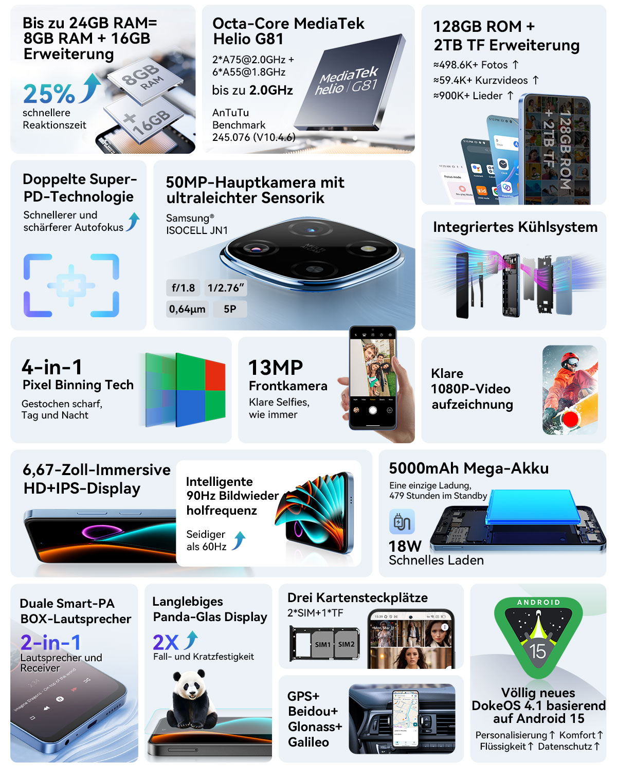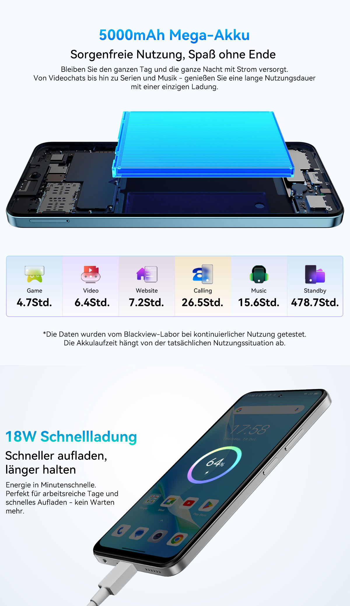 Batterie ---------- 5000mAh, 18W Schnellladung