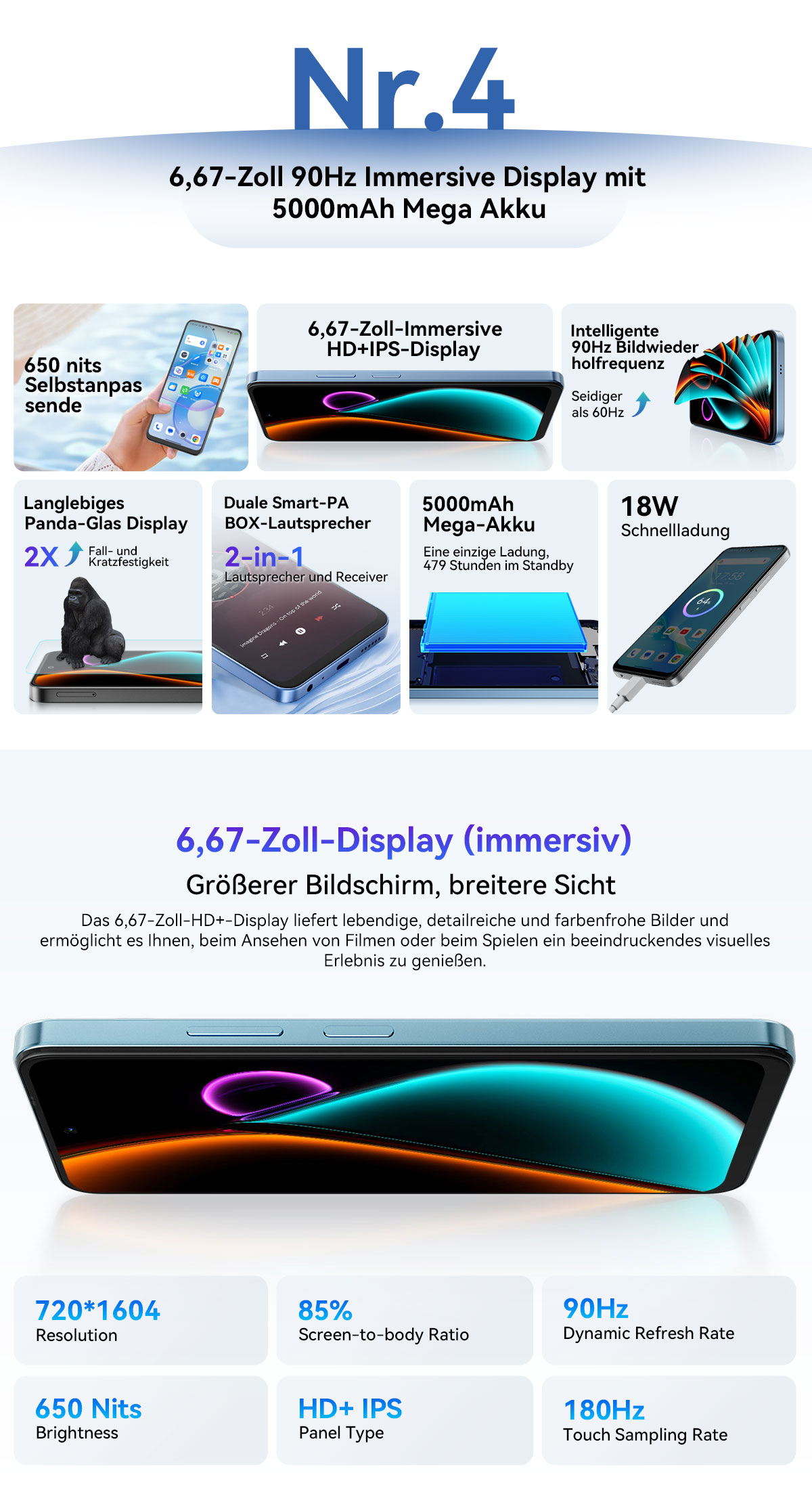 Bildschirm --------6,67” Zoll 720*1604 HD+IPS INCELL