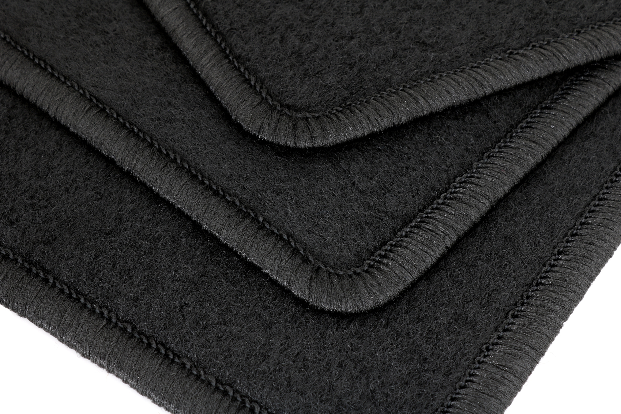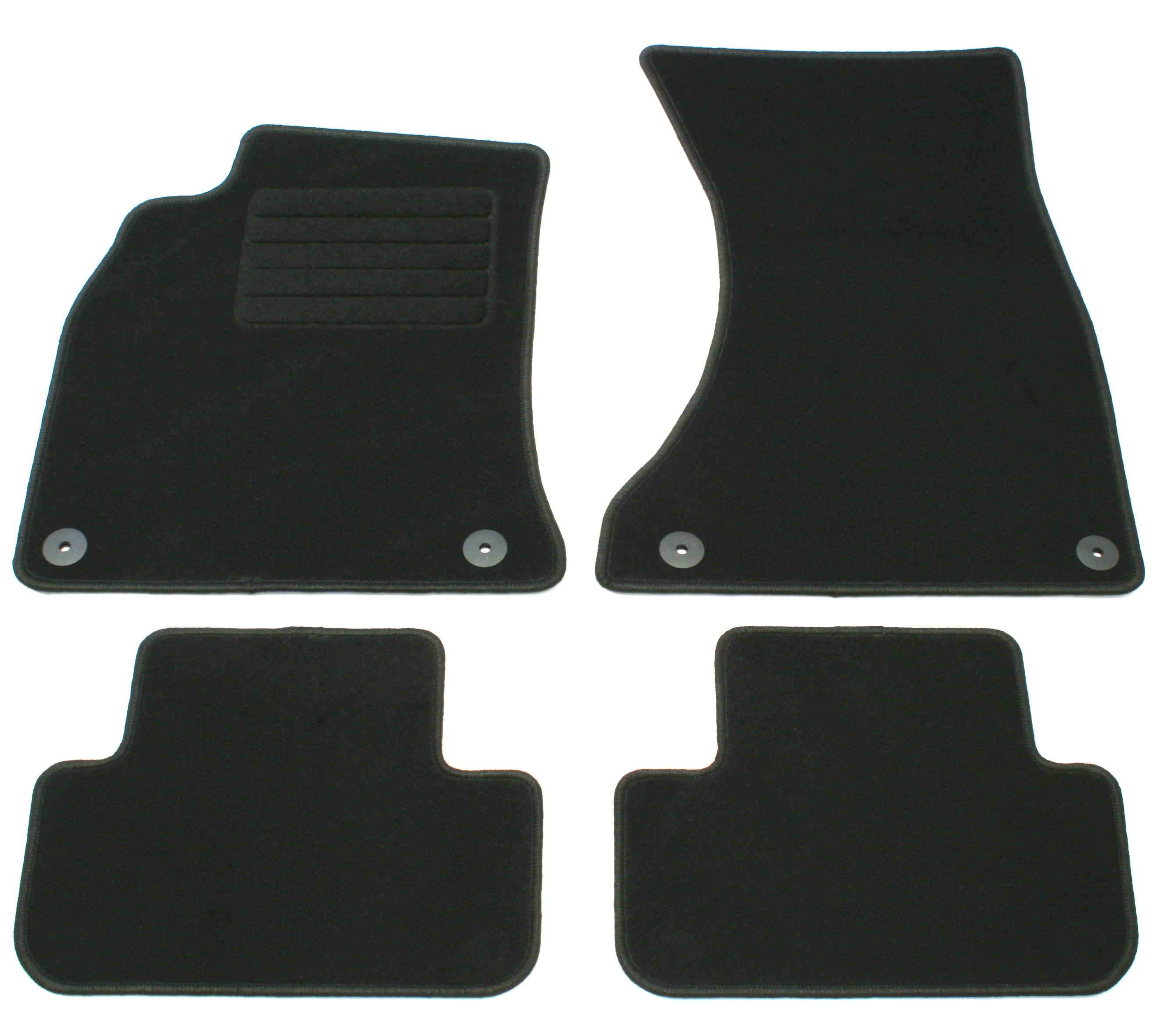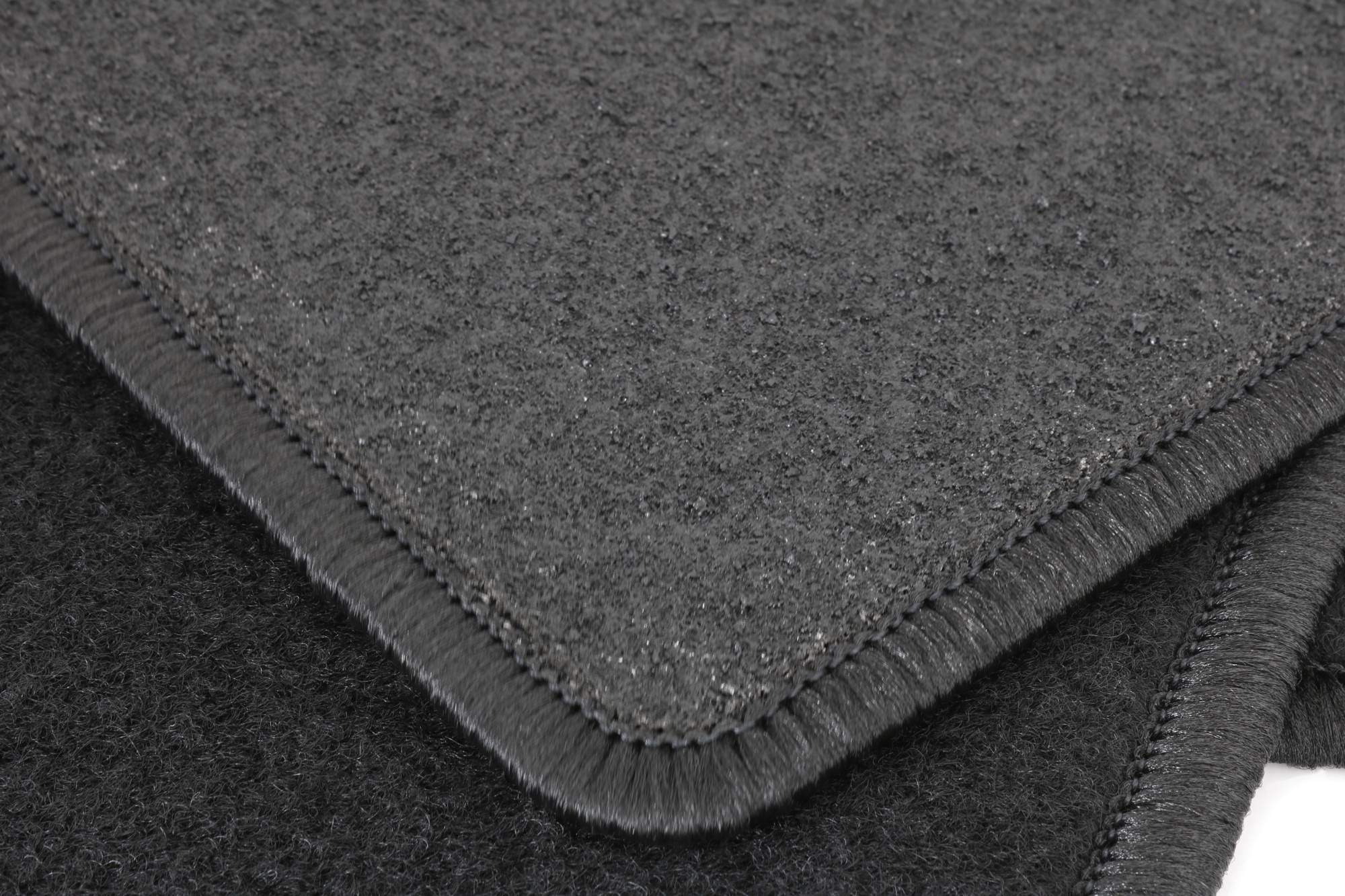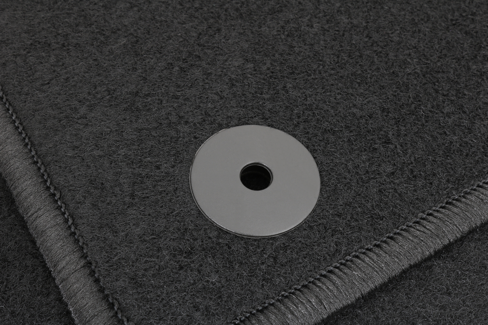 Die Grundfarbe der Fußmatten ist schwarz. Dies passt sich bestens und neutral an die meisten Fahrzeuge an, deren Bodenteppich bereits dunkel gehalten ist. Unauffällig und dezent, aber dennoch hochwertig eingefasst sind die Fußmatten mit schwarzem Glanzgarn gekettelt.